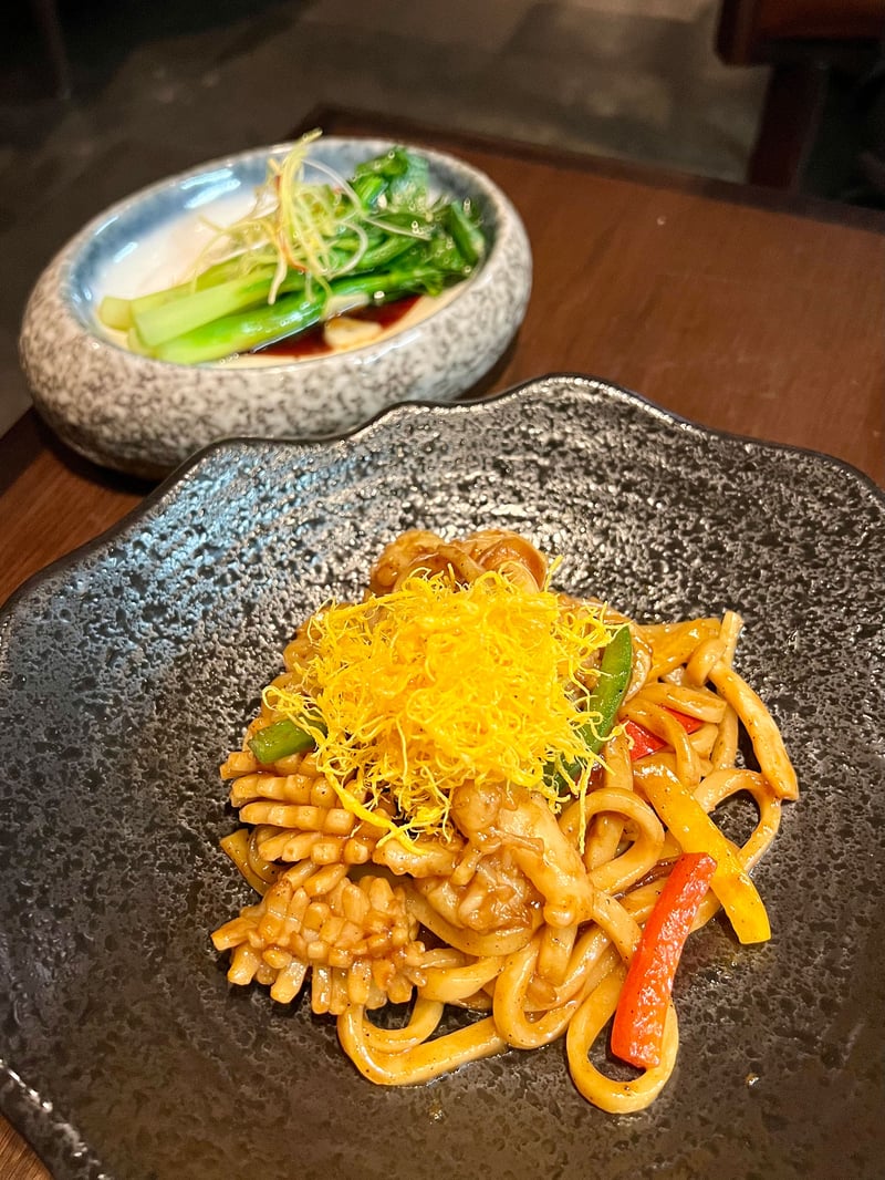 Nous avons également savouré un homard canadien sauté au wok avec truffe noire et blanc d'œuf, accompagné de brocoli cantonais à la sauce soja et d'udon sautés au wok avec crevettes, calmars et poivre noir. Notre expérience culinaire s'est conclue sur une note sucrée avec un gâteau aux haricots rouges. L'ambiance, imprégnée de la culture cantonaise, a ajouté une dimension supplémentaire à notre soirée gastronomique, complétant parfaitement cette expérience mémorable.