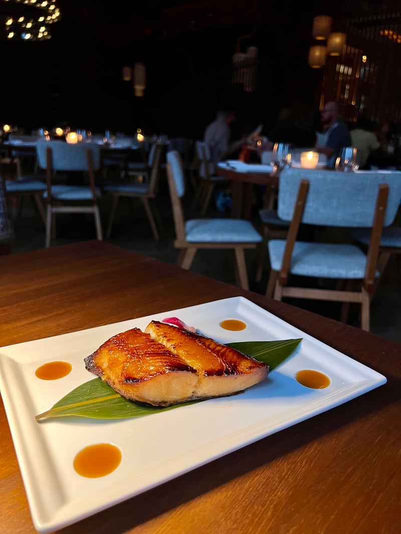 Nous avons ensuite choisi une sélection des plats emblématiques de Nobu, tout en cédant à la tentation de quelques créations qui attiraient particulièrement notre attention. Le défilé de saveurs a commencé en beauté avec le Saumon Karashi Sumiso, suivi de nigiris au saumon et de makis au thon, sans oublier l'incontournable Black Cod, fondant et savoureux qui rappelle la cuisine japonaise authentique. Le filet de bœuf Angus, accompagné d'une sauce au poivre wasabi, était un véritable délice. Quant aux dumplings d'agneau aux fruits, ils incarnaient à merveille la fusion entre les ingrédients locaux et la finesse de la technique japonaise, offrant un mariage subtil de textures et de saveurs qui nous a véritablement séduits.