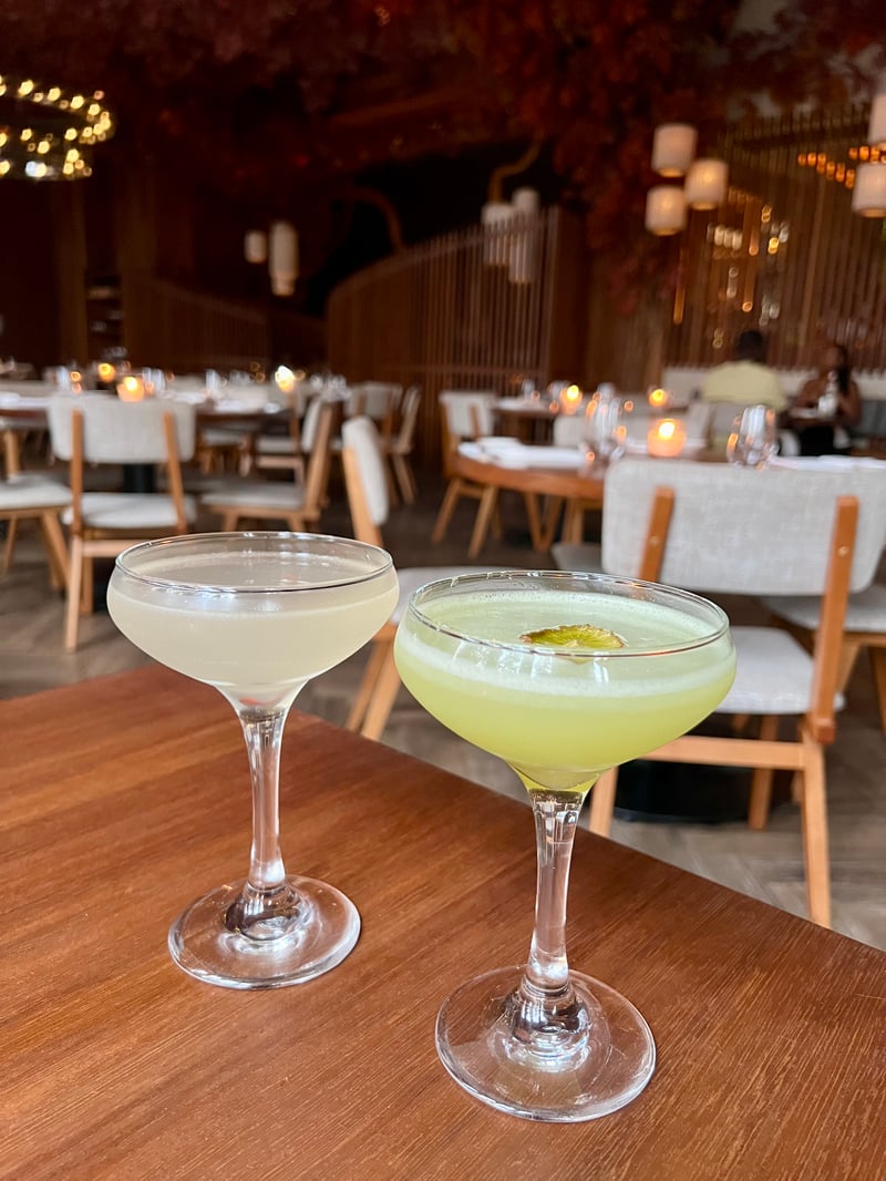 Nous avons débuté notre dîner par deux cocktails créatifs et audacieux : une Japanese Margarita pour monsieur (Saké, Shochu, Chili, Triple Sec, Citron Vert, Agave, Bitter d'Orange) et un Koen Martini pour moi (Vodka Wyborowa, Yuzu, Kiwi, Concombre, Fleur de Sureau). Leur équilibre subtil de saveurs exotiques donnait parfaitement le ton de la soirée.