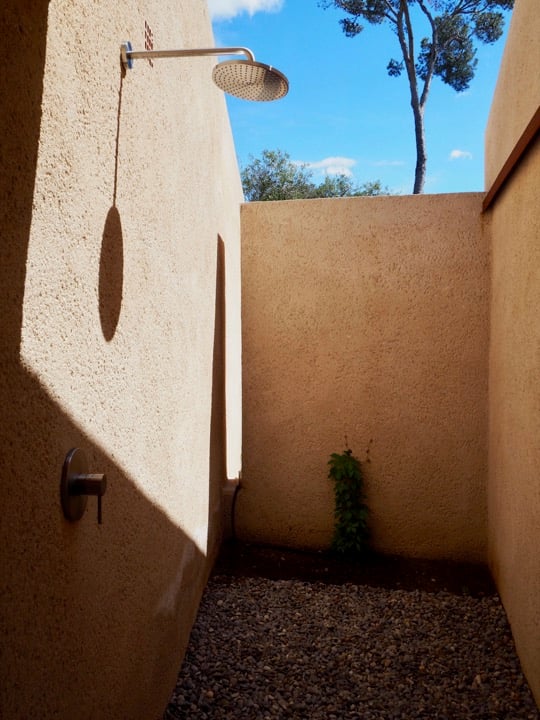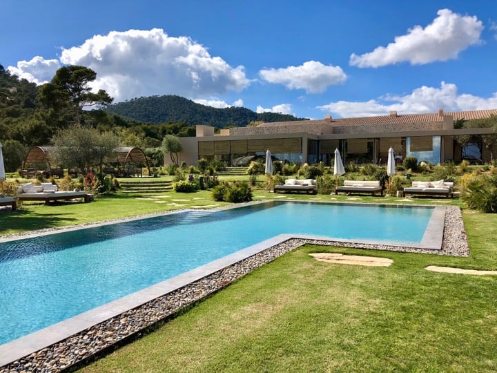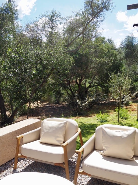 Disséminées dans un décor naturel de pins et d'oliviers, les 30 suites spectaculaires s'intègrent parfaitement dans le paysage et sont suffisamment espacées pour la tranquillité de chacun. Nous avons séjourné dans la plus petite nommée la Suite Concierge (qui affiche tout de même une surface de 50m2) dont la décoration minimaliste et les couleurs naturelles confèrent une atmosphère chic et design. Elle est prolongée par une terrasse qui permet de profiter du soleil et du doux climat des Baléares et cela une grande partie de l'année. J'ai également apprécié la salle de bains ultra design avec sa douche à ciel ouvert.