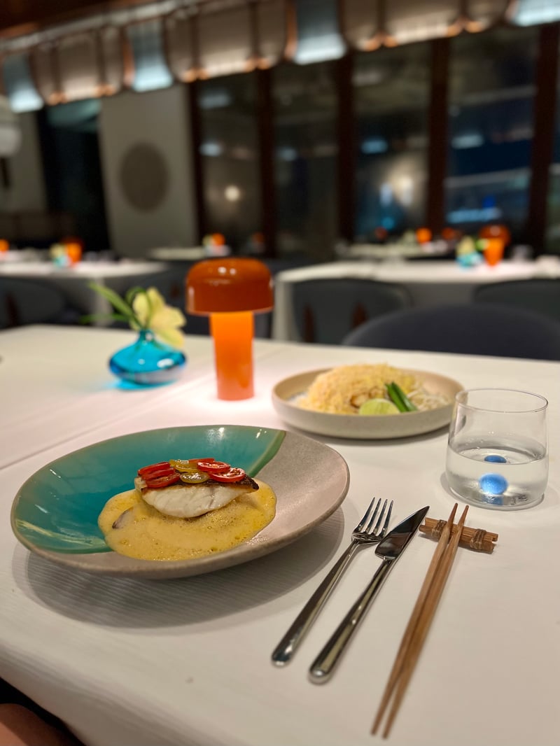 Nous avons eu le plaisir de dîner à Sea Fu, le restaurant signature, lors de notre première soirée. Après une première découverte lors d'un déjeuner en terrasse il y a quelques mois (lire notre review ici: Les Saveurs de l'Asie Rencontrent le Luxe de Dubai à Sea Fu), nous avons opté cette fois-ci pour la salle intérieure afin de redécouvrir les subtiles saveurs asiatiques. La soirée a débuté en beauté avec les cocktails Taj Mahal et Machu Picchu. En entrée, des nigiris au thon et à l'anguille, des tempuras de crevettes et une salade de canard, nous ont transporté directement au Japon.
