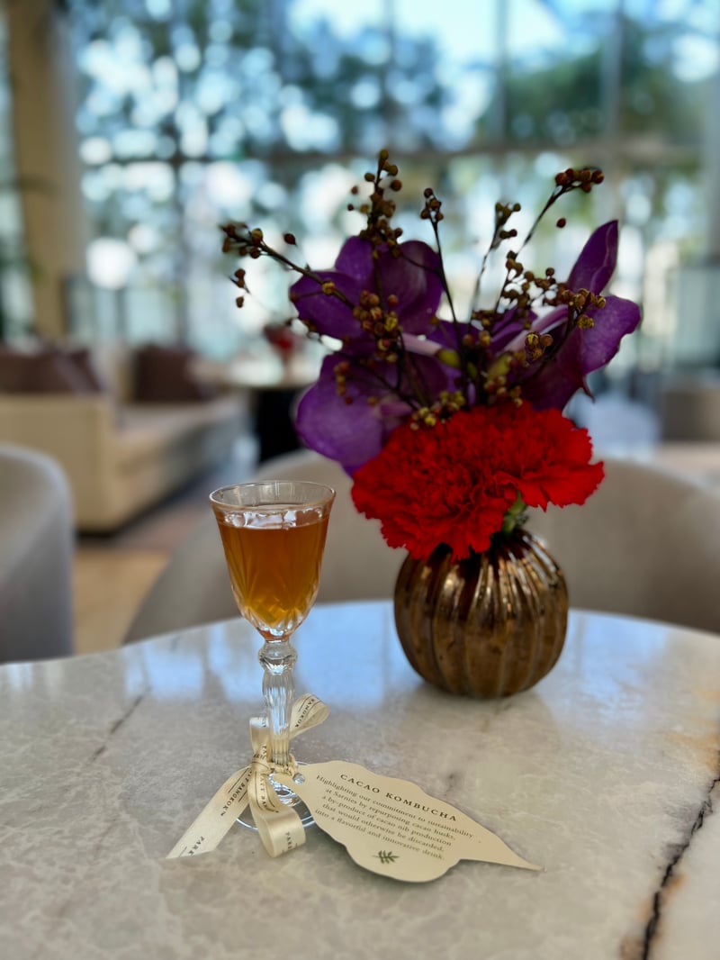 Du côté des boissons, nous avons savouré un thé Eros de chez Mariage Frères, une maison de thé française que j'apprécie tout particulièrement. Il est également possible d'opter pour un café issu de la collaboration avec Sarnies ou, pour une touche encore plus raffinée, une coupe de champagne. Pour prolonger le plaisir, chaque invité repartira avec un cadeau : une tablette de chocolat artisanal Paradai, symboles de l'esprit de Nature's Serenity.