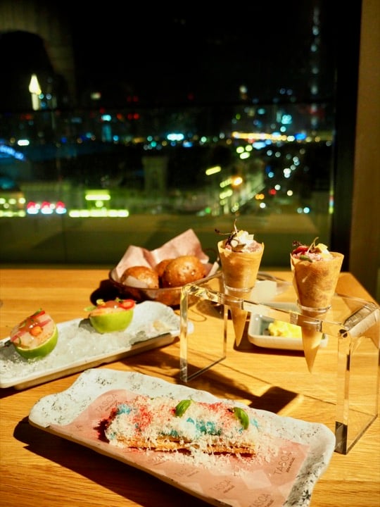 Le Mandarin Oriental Jumeira dispose de 6 restaurants et bars dont deux restaurants signatures qui font déjà parler d'eux. Il y a tout d'abord Tasca, la table gastronomique signée par José Avillez, célèbre chef portugais auréolé de deux étoiles Michelin dans son pays, et qui a ouvert ici son premier établissement à l'international. Nous nous sommes attablés face à la skyline (nous aurions aussi pu choisir de nous installer au bord de la piscine à débordement) pour découvrir des recettes aux saveurs portugaises.