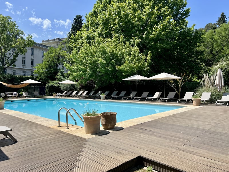 Le Prieuré-Baumanière invite à une véritable parenthèse de douceur au cœur d'un jardin méditerranéen, entre rosiers anciens, plantes aromatiques et arbres centenaires. On s'y promène à l'ombre des platanes, on s'installe sous la treille de glycine pour lire ou déjeuner en plein air, bercé par le chant des cigales. La piscine extérieure, longue de 18 mètres, est un atout majeur pour les chaudes journées d'été : elle offre calme et intimité, idéale pour quelques brasses en toute tranquillité. Transats confortables, service de collation à l'heure du déjeuner, et lumière dorée du soir qui caresse les pierres anciennes : tout concourt à faire de ce lieu un espace de détente absolue, propice à la rêverie et à la déconnexion.
