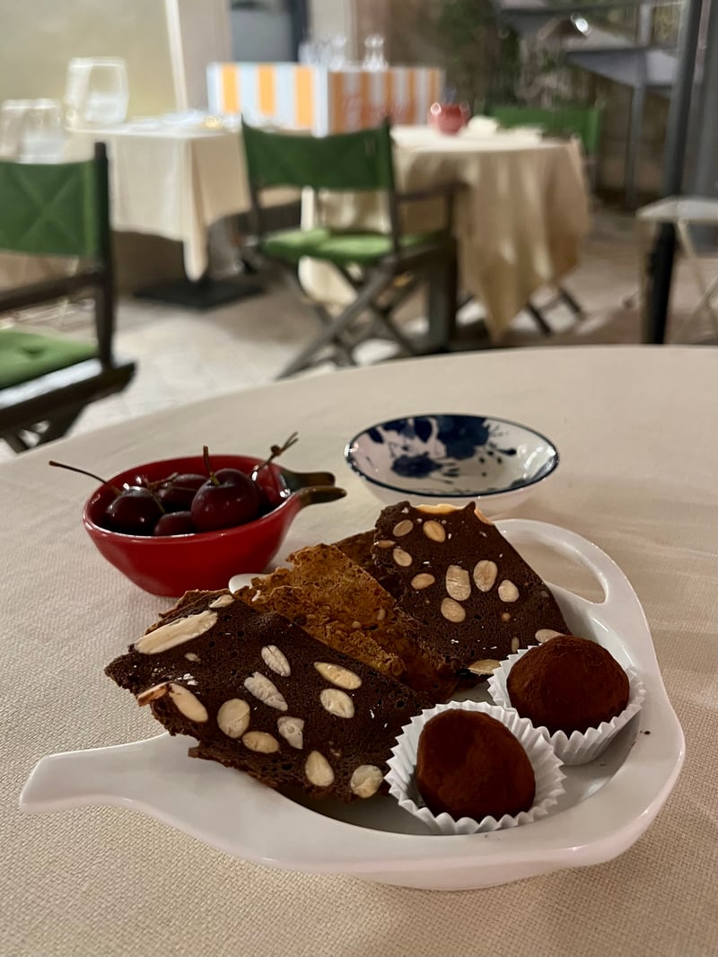Nous avons ensuite poursuivi avec des raviolis ricotta et épinards, dont la pâte dorée enveloppait une farce crémeuse et délicate. Nappés d'une sauce aux tomates cerises, légèrement confites, et parfumés de basilic frais, ces raviolis incarnaient à la perfection l'élégance de la cuisine italienne traditionnelle. Simples et raffinés, ils rendaient hommage à la richesse des produits locaux dans une assiette lumineuse et ensoleillée. Mon mari a opté pour les tagliolini parfumés au safran, d'une couleur éclatante et d'une texture soyeuse. Leur onctuosité était sublimée par une généreuse stracciatella de lait de bufflonne, apportant douceur et équilibre à l'intensité de l'épice. Les tomates séchées, posées en garniture, ajoutaient une profondeur de goût à la fois sucrée et acidulée.