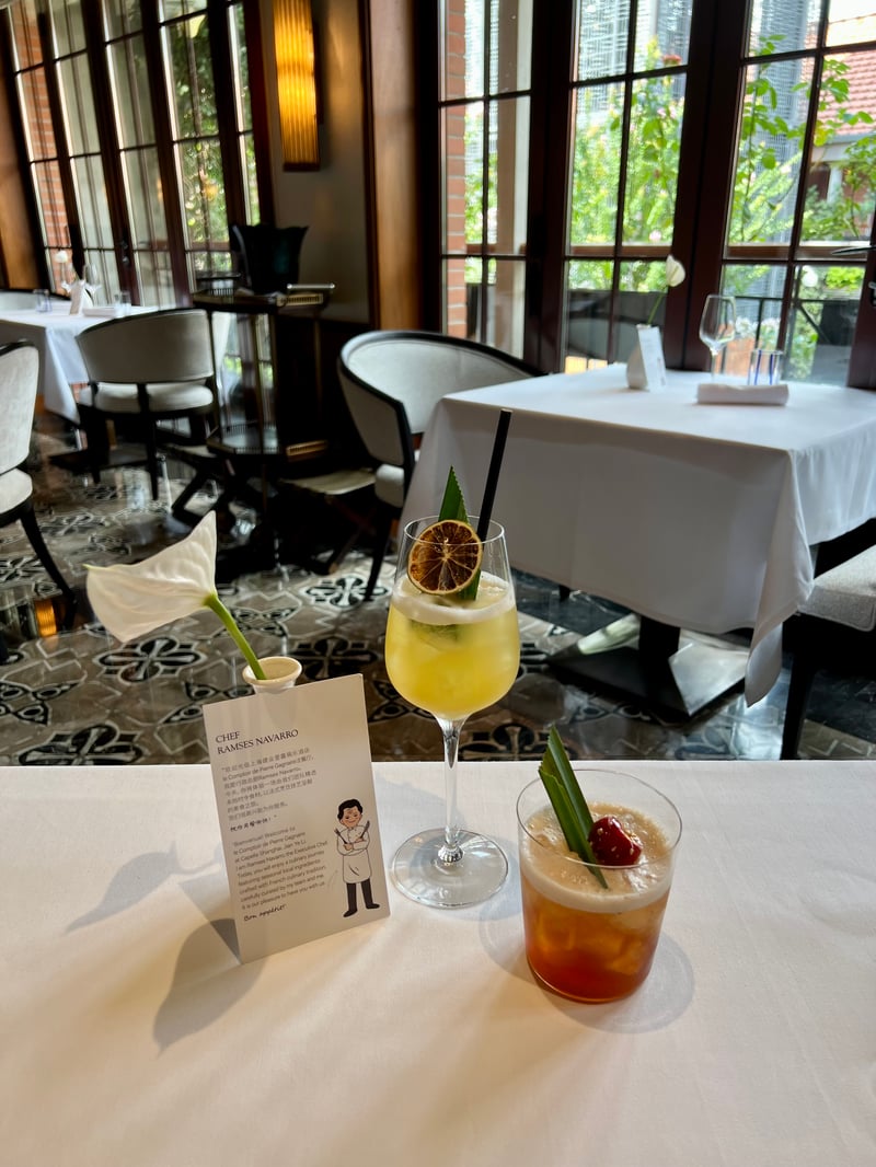 Situé dans le district de Xuhui, le Capella Shanghai est installé dans l'un des derniers ensembles de shikumen encore conservés à Shanghai. L'hôtel se compose de 55 villas et 40 résidences privées, restaurées dans l'esprit des années 1930 où l'influence française rencontrait l'architecture traditionnelle chinoise. L'atmosphère est calme, presque résidentielle, avec des ruelles pavées, des façades préservées et un travail intérieur discret et raffiné. On y trouve également l'Auriga Spa, réputé pour ses soins personnalisés, ainsi que The Gallery, un espace regroupant boutiques et adresses élégantes. C'est au cœur de cet ensemble que se situe le restaurant une étoile Michelin Le Comptoir de Pierre Gagnaire, où nous sommes venus déjeuner.