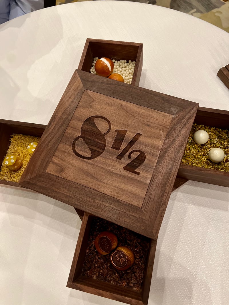 Puis, une parenthèse humble mais puissante : une sauce dense mêlant basilic, anchois, tomate et ail, dressée sur l'assiette en forme du logo 8½. Servie avec un pain aux graines de quinoa, elle invitait à un geste simple : rompre, tremper, savourer. Une bouchée d'une vérité désarmante — le produit, l'assaisonnement, l'émotion immédiate.