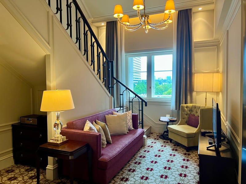 Nous avons séjourné dans une chambre Maisonette de 65 m², un choix idéal pour ceux qui recherchent davantage d'espace et d'intimité sans opter pour une suite traditionnelle. Répartie sur deux niveaux, elle séduit par son élégant salon à double hauteur, baigné de lumière grâce à de larges fenêtres donnant sur le paysage urbain animé de Marunouchi, et sublimé par des plafonds élevés, un mobilier classique aux lignes élégantes et des teintes douces rehaussées de tissus chaleureux. Un escalier mène ensuite à la chambre en mezzanine, véritable cocon propice au repos, avec un lit king-size d'un confort exceptionnel, installé sous des moulures délicates et une verrière apportant une lumière naturelle apaisante. Cette configuration en duplex offre un équilibre parfait entre sophistication, fonctionnalité et sensation de luxe discret, faisant de la Maisonette une expérience à part entière, fidèle à l'esprit unique de The Tokyo Station Hotel.