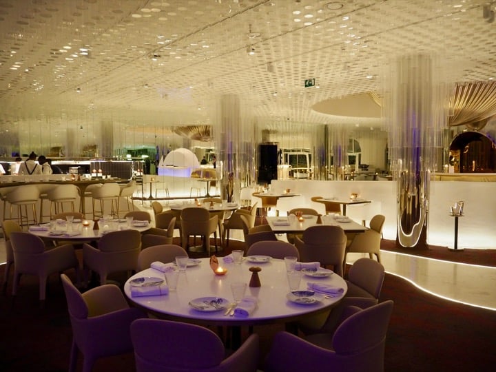 L'Emerald Palace Kempinski a égalementvu les choses en grand pour ses bars et restaurants! Ce n'estpas moins de 8 lieux distincts pour des expériences culinairesvariées. Il y a tout d'abord miX, le 1er restaurant du cheftriplement étoilé Alain Ducasse aux Emirats Arabes Unis. Nousavons pu déguster lors d'un dîner une cuisine contemporaine auxinfluences françaises dans un menu éclectique qui change au fil dessaisons. L'atmosphère contraste avec le classicisme del'établissement, à miX l'ambiance se fait résolument pluscontemporaine avec une salle au mobilier blanc et or tandis que surla terrasse, l'attention est captivée par la vue panoramique. Lasubtilité de la cuisine Ducasse est bien présente dans lesassiettes, le tout dans un décor sublime.