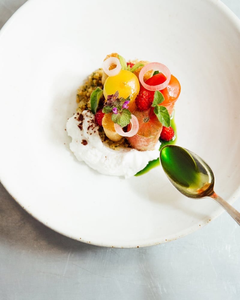 De l'entrée au dessert, chaque plat au Frenchie témoigne de la cuisine inventive et axée sur le produit de Marchand. Le menu est composé de combinaisons de saveurs originales qui illustrent la gastronomie moderne. De plus, l'expérience culinaire est renforcée par la sélection soignée de vins choisis par le sommelier, conçus pour compléter les plats. Le service du restaurant trouve un équilibre parfait, professionnel mais loin d'être impersonnel, culminant dans une expérience culinaire qui mérite d'être réservée.