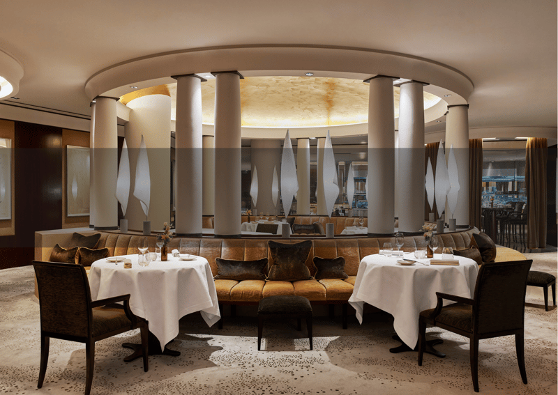 Dès l'entrée dans Pur', le style et la décoration minutieusement conçus captivent immédiatement. Avec une atmosphère mêlant confort et confidentialité, c'est l'endroit idéal pour un dîner cosy. Cet espace de restauration élégant, conçu par Ed Tuttle, est un mélange harmonieux de couleur et de lumière. L'ambiance du restaurant est accentuée par une vaste rotonde, couronnée d'un dôme et entourée d'une colonnade, créant une atmosphère de restauration véritablement unique.