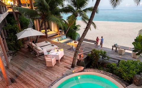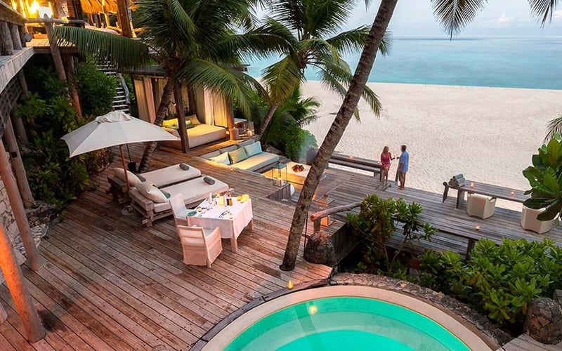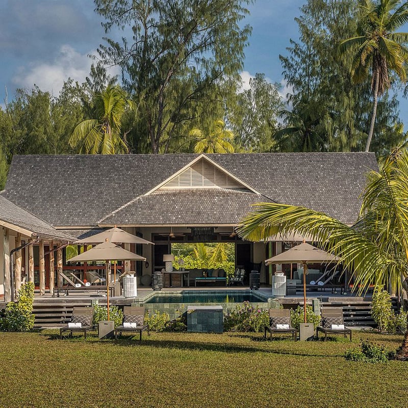 À trente-cinq minutes de vol de Mahé, cette île corallienne privée de 380 hectares déploie quatorze kilomètres de plages immaculées. Ses 71 villas disposent chacune d'une piscine privée et donnent sur des jardins luxuriants. Un ancien phare reconverti accueille les dîners au coucher du soleil, complété par des tables méditerranéenne et japonaise. Le spa Syel, avec ses cinq pavillons en plein air et ses soins aux actifs botaniques africains, parfait l'expérience. Familles et couples en quête d'isolement raffiné y trouveront leur éden.