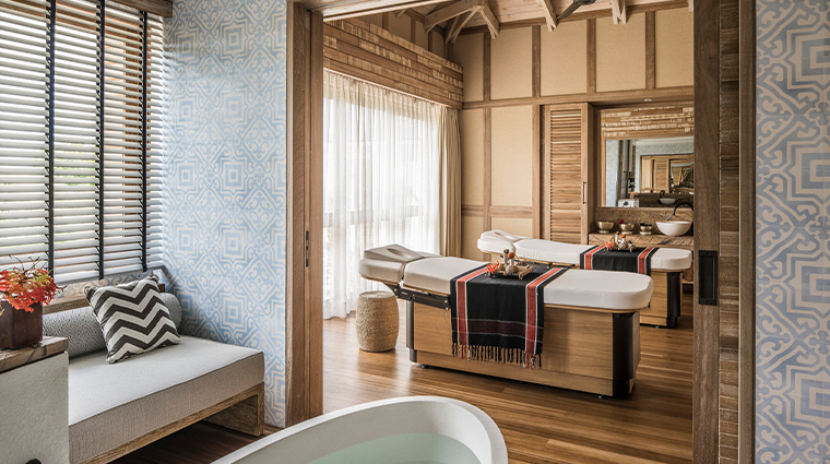 Sur l'île isolée de Desroches, ce spa confidentiel ne compte que cinq suites de soins, chacune dotée d'une baignoire en pierre et de fenêtres ouvertes sur les brises de l'océan Indien. Les séances de yoga se déroulent sur la piste d'atterrissage de l'île ou face à la plage. Soins signature : massage améliorant le sommeil, rituel anti-âge aux baguettes de jaspe, cérémonies matinales et vespérales mêlant mantras et méditation.