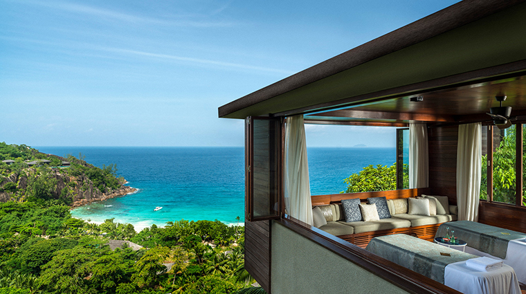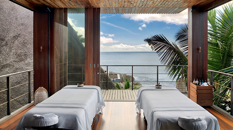 Dominant les falaises de Petite Anse Bay, ce sanctuaire à ciel ouvert puise dans la flore seychelloise—coco, fleurs tropicales, algues marines—pour des soins sublimés par la lumière dorée du crépuscule. Le rituel Miracle of Coco De Mer déploie ses 150 minutes entre gommage vivifiant, masque nourrissant, massage au beurre hydratant et bain face à l'océan. Une plateforme panoramique offre les couchers de soleil; le programme annuel Visiting Masters réunit praticiens de reiki et thérapie sonore.