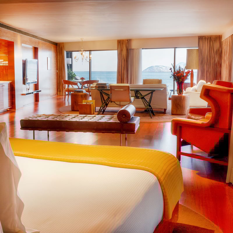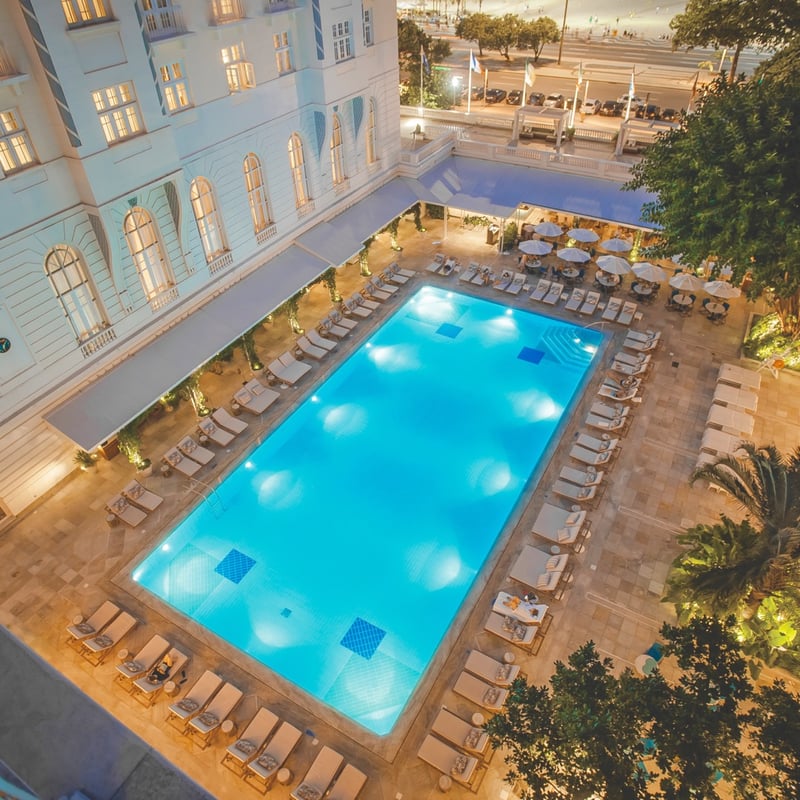 Posé face à Copacabana depuis 1923, ce palais Art déco aux marbres blancs et tapis persans perpétue l'éclat des grands hôtels de la Côte d'Azur. Refuge historique de Marlene Dietrich et d'Orson Welles, il cultive une atmosphère de luxe rétro autour d'une piscine légendaire où se croisent voyageurs fortunés et Cariocas sculptées. Les penthouses offrent majordome, terrasse privée et bassin exclusif, prolongeant un siècle de glamour tropical.