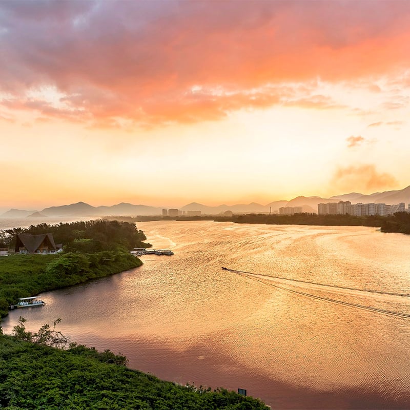 Premier resort urbain de Rio, l'établissement domine Barra da Tijuca entre océan Atlantique et lagune Marapendi. Chacune des 436 chambres dispose d'un balcon privé face à l'eau, tandis que trois adresses signées Arthur Casas orchestrent la vie sociale—notamment Cantô Gastrô e Lounge, où la Bossa Nova live traverse des jardins ponctués d'art brésilien. L'accès direct à la plage privée et l'ampleur des installations séduisent familles et groupes d'affaires cherchant une qualité constante loin des rivages centraux.