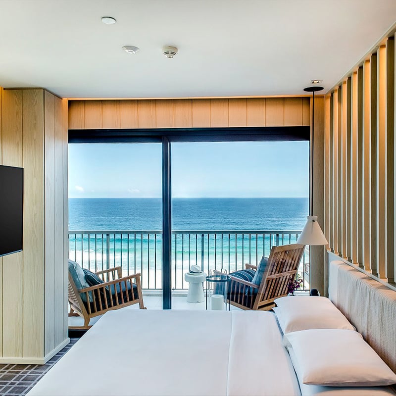 Le créateur d'Osklen signe ici son premier hôtel, posé face à l'Atlantique avec 51 chambres habillées de bois brésilien et de mobilier sculptural. Les baies vitrées cadrent l'océan sans obstacle, tandis que la piscine sur le toit aligne dans un même plan le Christ Rédempteur, les Deux Frères et la plage d'Ipanema. Spa, politique d'accueil des animaux et accès direct à Leblon en font une adresse intime pour couples en quête d'un pied-à-terre design, davantage qu'un resort familial.