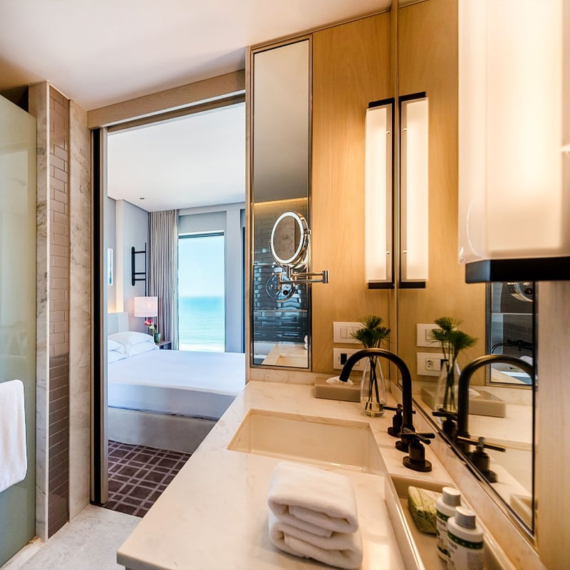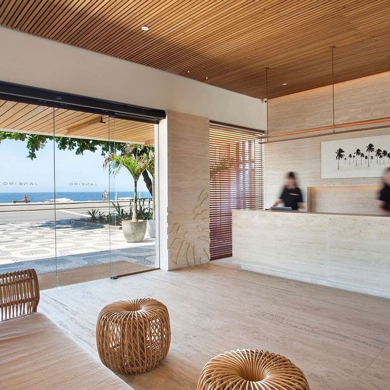 Arthur Casas signe à Copacabana une architecture aux volets perforés blancs diffusant une lumière tamisée sur du mobilier moderniste de Sergio Rodrigues et Isamu Noguchi. La piscine à débordement sur le toit se fond dans la baie de Guanabara face au Pain de Sucre, tandis que les majordomes personnels orchestrent excursions au Corcovado ou installations sur la plage. Pierre claire, courbes élégantes et bois chaleureux réveillent l'âge d'or carioca des années cinquante entre spa généreux et table gastronomique Emile.
