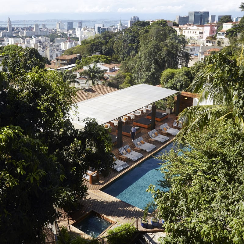 Ancienne plantation de café du XVIIIe siècle métamorphosée en refuge de 44 chambres, cet établissement perché dans le quartier bohème de Santa Teresa marie architecture néo-coloniale—bois tropicaux recyclés de jacaranda, cannelier et ipé, ardoise dorée locale—et mobilier moderniste brésilien signé Sergio Rodrigues. Térèze figure parmi les meilleures tables de Rio ; le bar en terrasse célèbre les rhums brésiliens. Suites romantiques face à la baie de Guanabara, jardins plantés de manguiers et d'abricotiers, piscine spectaculaire, Le Spa aux huiles naturelles et produits exclusifs Natura.