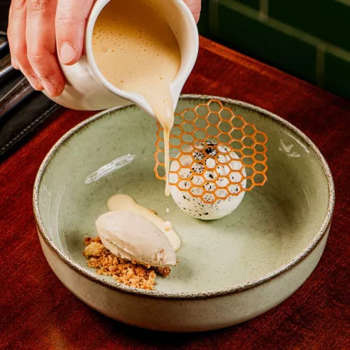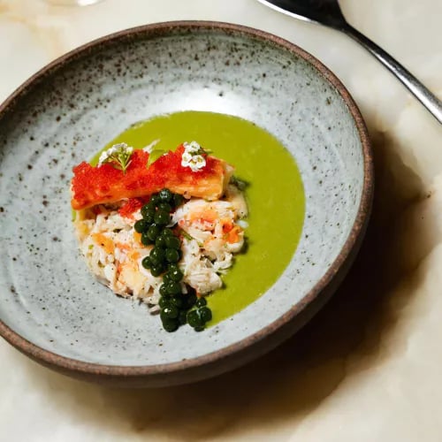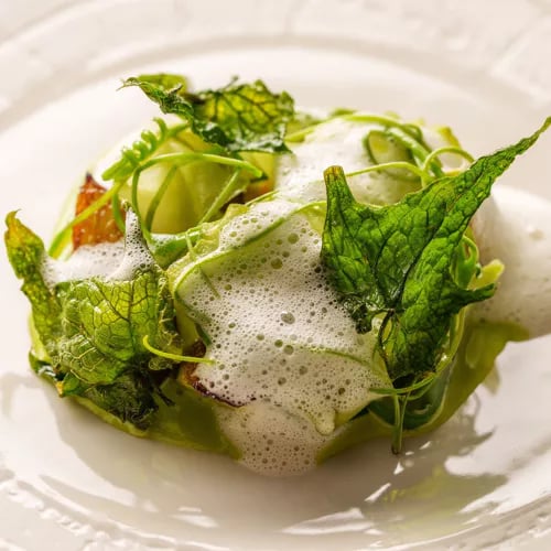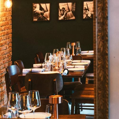 Derrière une façade sobre, une salle à la charpente vertigineuse conjugue brique patinée et cuisine ouverte, cadre d'une étoile Michelin que le chef Alberto Landgraf consacre aux racines brésiliennes et à la franchise des saveurs. Le menu dégustation unique évolue au fil des saisons, renouvelé chaque jour selon les arrivages : langoustines mariées au pirão et au poivre aromatique témoignent d'une technique épurée, centrée sur le produit.