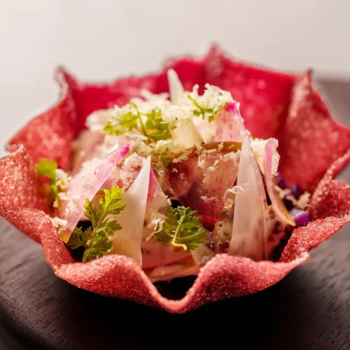 Dans le palace historique de Copacabana, Nello Cassese signe un menu unique baptisé Essenza Dell'Evoluzione, décliné en onze ou quatorze services. Le chef napolitain réinterprète pizza frite et thon méditerranéen en croisant produits italiens et brésiliens, délivrant une cuisine actuelle ancrée dans les traditions piémontaises et campanaises. Le crevette rouge accompagné d'escabèche d'amande et de salade russe s'impose comme référence, face à la piscine éclairée du Belmond.