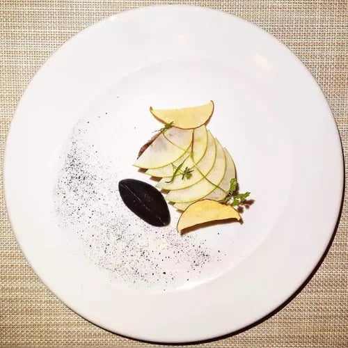 Installé dans une ancienne galerie d'art à deux pas du jardin botanique, ce restaurant étoilé révèle le parcours européen du chef João Paulo Frankenfeld à travers un menu dégustation franco-brésilien où figurent légumes et charcuteries de sa production. Le raviolo noir aux pétoncles, émulsion au vin effervescent et lardo artisanal, illustre la rigueur technique déployée, tandis qu'un maître sommelier muni de son tastevin traditionnel orchestre l'accord des vins.