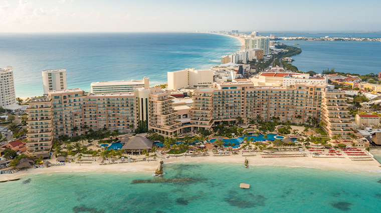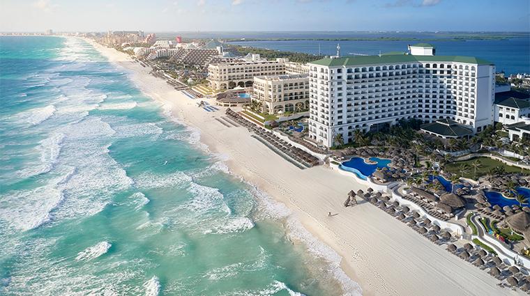 L'île Isla Mujeres protège la plage, offrant des eaux d'une limpidité exceptionnelle et des conditions de baignade sans égales à Cancún. Une piscine lagonaire bordée de trois bars palapa et ponctuée de cascades s'étend jusqu'au rivage. Le Gem Spa propose un rituel d'hydrothérapie en dix étapes conclu par un bassin de massage spectaculaire, tandis que La Joya marie cuisine mexicaine raffinée et dégustations de tequila. Les familles apprécient le Coral Kidz Club avec son théâtre et ses ateliers culinaires.