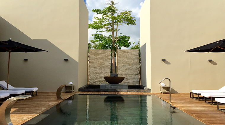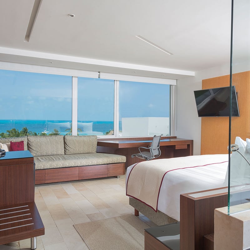 Quarante-cinq suites signées Piero Lissoni déploient un minimalisme italien teinté d'accents mexicains, la plupart offrant des baies vitrées sur les Caraïbes et, pour certaines, un hamac sur balcon privé. Sur 250 mètres de plage exclusive, le Ciel Spa et sa piscine thermale côtoient le grill nippo-argentin du chef Jose Icardi, tandis qu'un parcours de golf Tom Weiskopf complète l'expérience pour les voyageurs actifs.