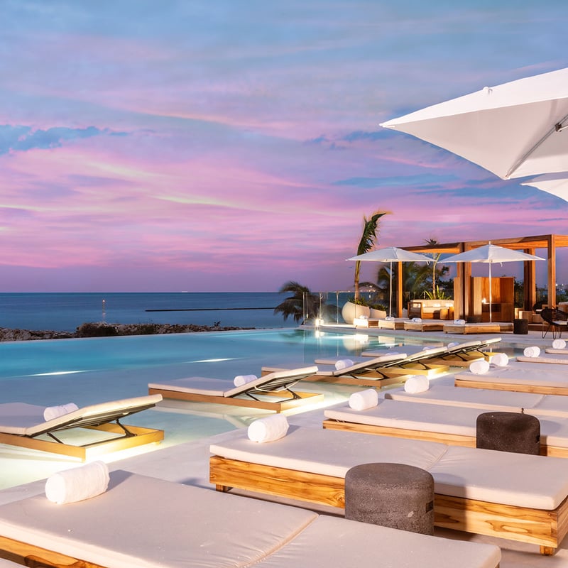 Marbre noir, teintes rose poudré et antiquités françaises composent un décor inattendu sur la côte caribéenne. Le long de la plage d'un demi-kilomètre, des cabanes privées accueillent les baigneurs tandis qu'un « Coconut Boy » prépare des cocktails à base de noix de coco fraîches. Au Culinary Center face à l'océan, le chef élabore des menus sur mesure sous les yeux des convives. Un spa de cinq cents mètres carrés avec circuits d'hydrothérapie séduit couples et familles en quête d'élégance décontractée.