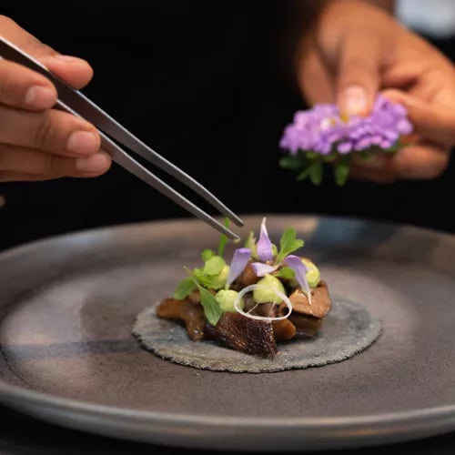 Face à Isla Mujeres, le chef Edgar Nuñez compose une ode raffinée au terroir mexicain, revisitant tacos de crevettes tempura à la sonorane et mole coloradito d'Oaxaca accompagnant une caille rôtie. Les sérénades de violon s'élèvent depuis le balcon tandis que la carte saisonnière célèbre les légumes et l'agriculture mexicaine, dans un décor d'artisanat local où les œuvres illustrent la femme mexicaine à travers les âges de la vie.