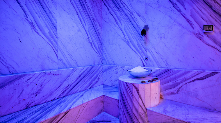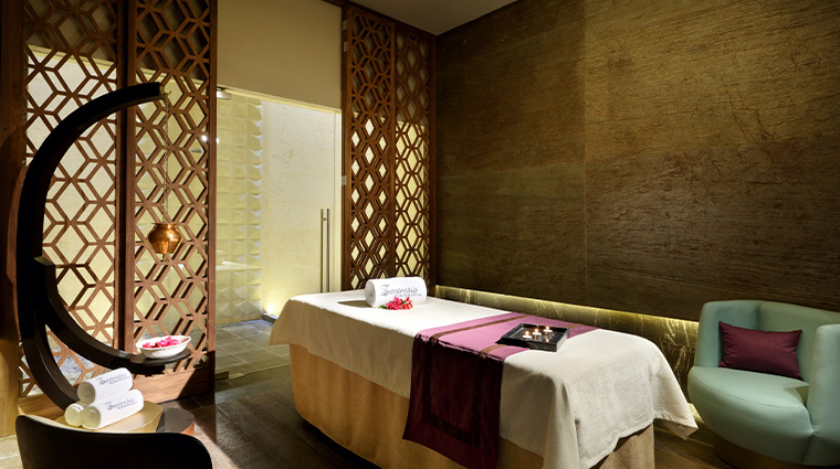 Déployé sur près de 4 000 mètres carrés au sein du Grand Fiesta Americana Coral Beach, Gem Spa impose un rituel d'hydrothérapie en dix étapes avant chaque soin. Ses 26 cabines habillées de mosaïques italiennes et de granit noir accueillent des massages signature — le Seventh Wonder dispose des cristaux de quartz sur les points chakras, tandis que l'Asian Wisdom puise dans les traditions balinaise, thaïlandaise, indienne et chinoise.