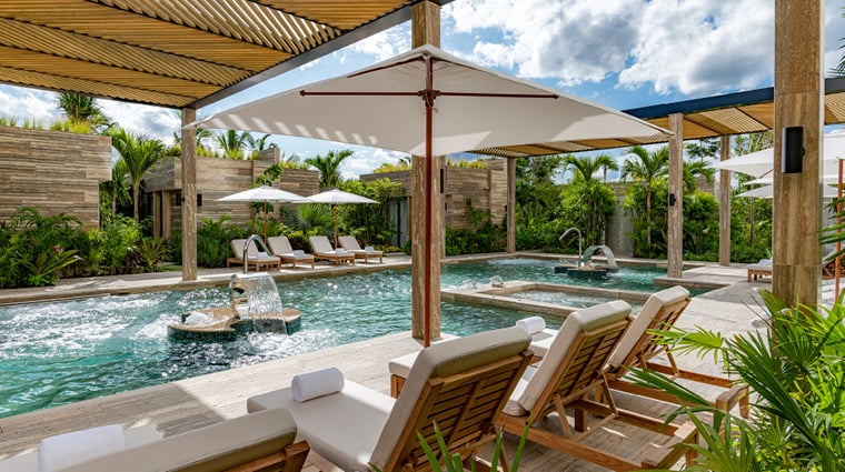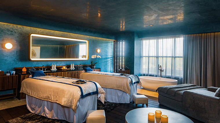 Déployé sur trois niveaux et plus de 3 000 mètres carrés au sein du JW Marriott, le Sens-Yah Spa puise dans les traditions curatives mayas : chaque soin débute par une prière avant que les thérapeutes n'appliquent des techniques ancestrales, notamment le massage Hunab Ku et son travail abdominal destiné à rétablir la circulation énergétique. Une piscine intérieure chauffée aux baies vitrées panoramiques surplombe l'océan, tandis que des palapas en bord de plage accueillent des massages bercés par le ressac.