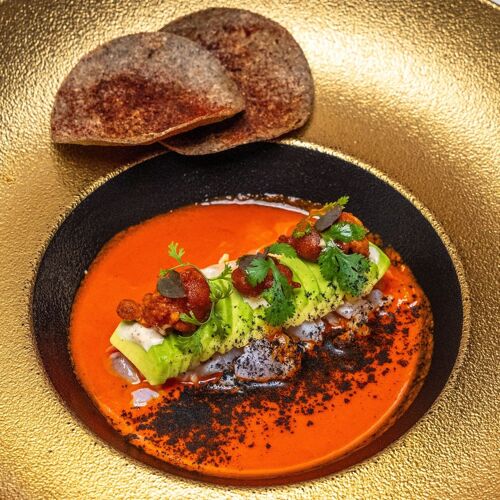 Sous la direction du chef Jonatán Gómez Luna, cette table étoilée Michelin déploie un menu dégustation théâtral parcourant les terroirs mexicains. Les assiettes s'enchaînent en crescendo : beignet farci au huitlacoche nappé de sauce poblano et épazote, foie gras lové dans un écrin de fruits frais, défilé de poissons et crustacés aux présentations audacieuses. Le final sucré s'étire en une longue procession de douceurs, signature d'un savoir-faire abouti.
