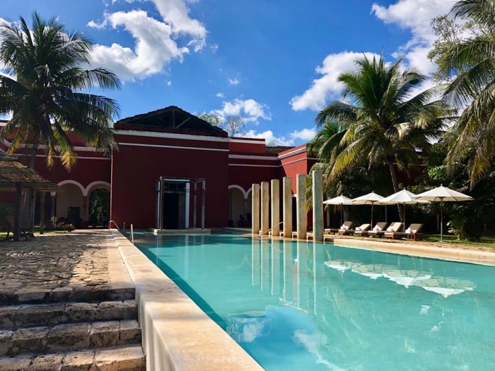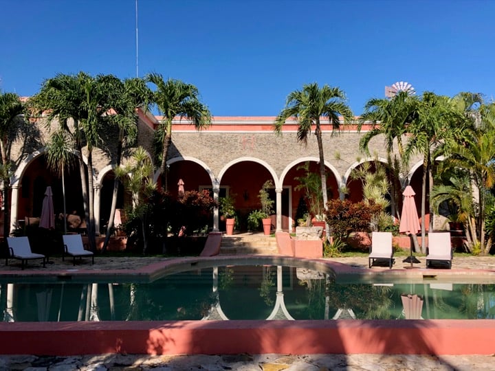 Ce matin, nous découvrons le centre historique de Mérida et notamment la Casa Montejo, un très bel hôtel particulier que l'on peut visiter pour s'imprégner de la vie à cette époque! La visite est plutôt rapide mais le lieu est plein de charme! Nous déambulons ensuite dans les jolies ruelles mais la ville étant plutôt touristique, nous préférons reprendre rapidement la route! Nous nous dirigeons vers notre étape «repos» du séjour : ous passons deux nuits au sud de Mérida à la Hacienda Temozon, une des plus belles adresses de la région. Le cadre est exceptionnel dans cette ancienne hacienda réaménagée en boutique hôtel haut de gamme, que ce soit au niveau des chambres, de la piscine et même des salles des machines qui sont encore visibles. Un vrai bonheur!