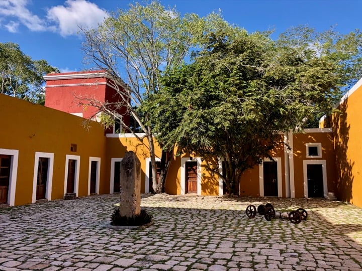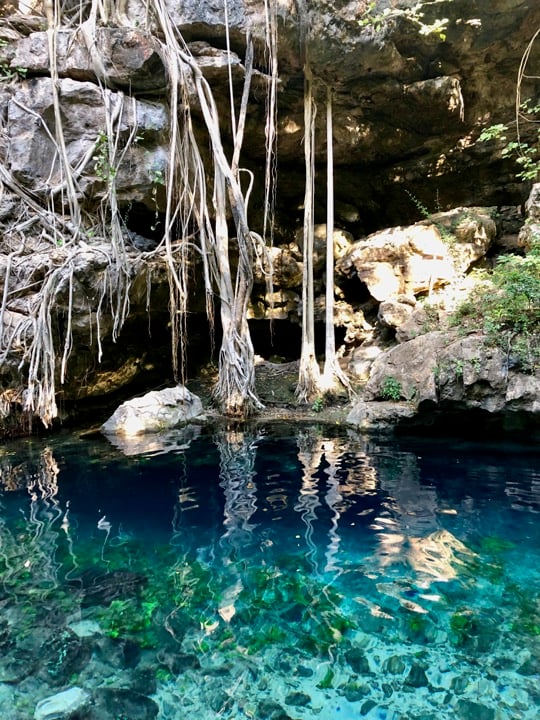 Après 2 heures de route, nous arrivons à Valladolid! La ville est plutôt jolie et le centre assez petit et facilement explorable à pied. Nous découvrons les petites rues avec quelques jolis boutiques de créateurs en nous dirigeant vers le Couvent de San Bernardino de Siena que l'on visite. Après cela, nous récupérons notre voiture pour aller découvrir notre premier cénote: il s'agit de gouffres naturels remplis d'eau et la région du Yucatán est très riche de ces phénomènes naturels. Nous allons découvrir le cénote Oxman, aménagé au sein d'une hacienda avec piscine. Un peu touristique mais nous ne sommes pas nombreux! Une première baignade surprenante!