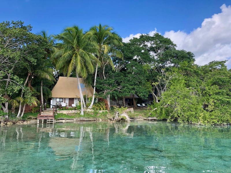 Après un copieux petit déjeuner, on prend la route pour Bacalar: 4h30 autant dire que ce n'est pas la journée la plus interessante de ce road trip au Yucatán. Conduire ici est plutôt fatigant avec tous les ralentisseurs, les chiens qui traversent sous nos roues et les autres automobilistes, mais en étant vigilant tout se passe pour le mieux! Nous arrivons en milieu d'après midi dans notre hôtel au bord de la lagune de Bacalar: le cadre est exceptionnel! C'est vraiment une ambiance de vacances qui nous envahit à ce moment-là.