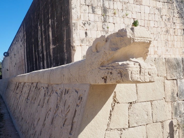 7h45: nous sommes déjà devant l'entrée où nous rejoignons notre guide (guide francophone que nous avons réservé par l'intermédiaire de Secretoo qui propose diverses excursions au Yucatán). Ce site archéologique est très très touristique d'où l'importance de le visiter au plus tôt. Nous découvrons Chichén Itzá pendant deux heures avec de nombreuses explications, la présence du guide est vraiment un must! (si vous avez l'occasion d'en prendre un, c'est sur ce site qu'il faut le faire !). A notre sortie vers 10h30, les cars de touristes affluent, l'ambiance devient vite étouffanteet nous nous réjouissons de nous être levés si tôt !