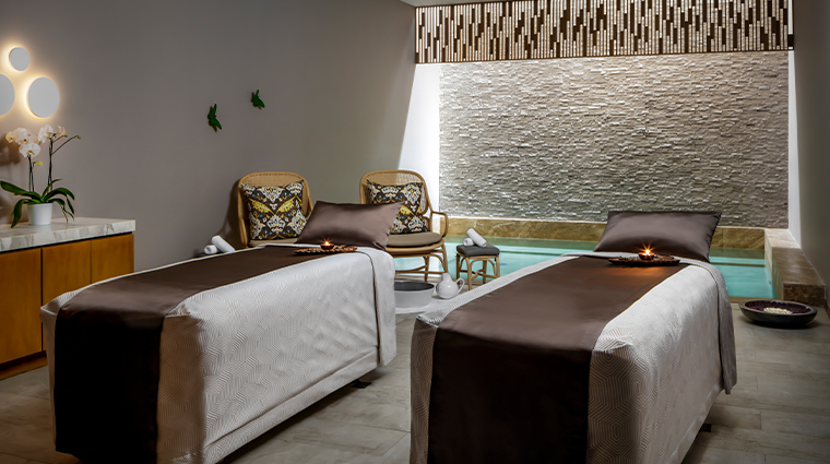 Déployé sur près de deux mille mètres carrés face à l'océan, ce sanctuaire mêle espaces intérieurs et jardins paysagers autour de treize villas privées dotées de bassins à remous et hammams. Les soins puisent dans les rituels curatifs ancestraux mexicains propres à cette adresse, tandis qu'une collaboration avec ESPA décline des protocoles sur mesure. Un centre de bien-être et un salon de barbier complètent l'offre.