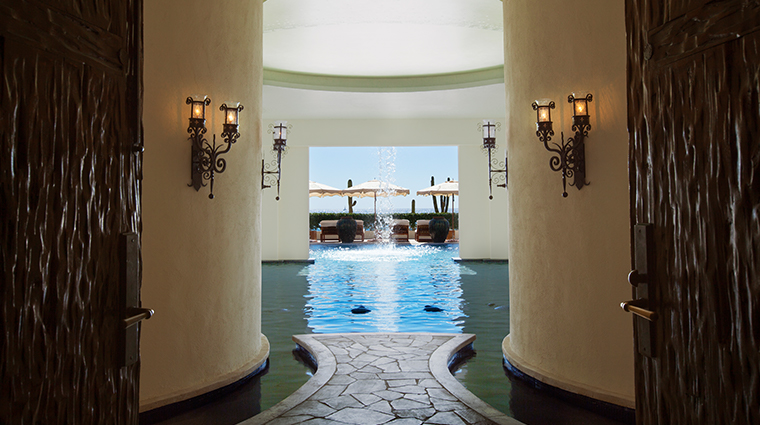 De monumentales portes en bois s'ouvrent sur un jardin luxuriant où le rituel débute par un parcours aquatique—bassins chauds, grottes de vapeur, cascade fraîche—préparant le corps aux soins. Seul spa hôtelier au monde à proposer la ligne Marie Veronique Organic, l'établissement puise dans la flore de Baja pour ses protocoles, dont le Sol Relief à l'avocat destiné aux peaux éprouvées par le soleil. Soixante cours hebdomadaires et des aguas frescas pastèque-gingembre prolongent l'expérience.