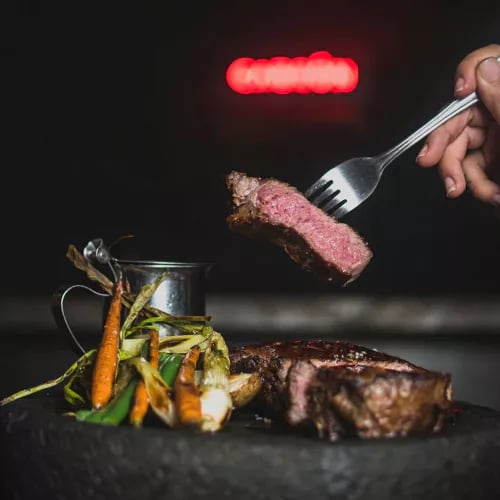 L'obscurité enveloppe la salle de Carbóncabrón, où les yeux s'habituent peu à peu aux impressionnantes étagères de bois de mesquite qui alimentent les braises du Chef Poncho Cadena. La carte explore légumes, fruits de mer et viandes du « marché noir » — langue, ris de veau. Les pétales d'oignon en tempura au charbon, accompagnés d'aïoli au habanero, se dégustent à la main, tandis que les crevettes sur ventrèche épaisse offrent une douceur fumée mémorable.