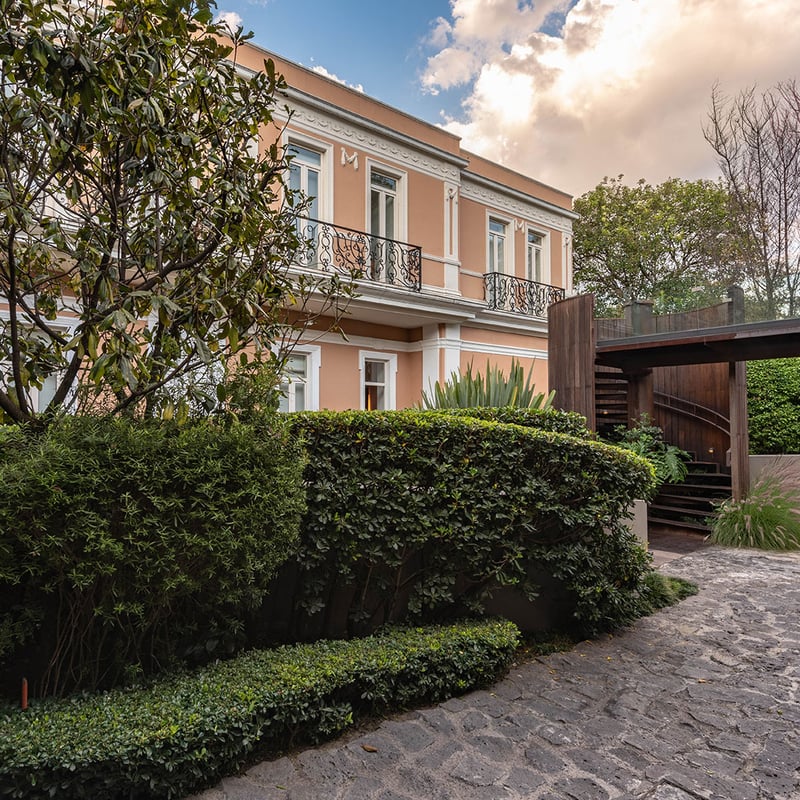 Cette demeure Belle Époque des années 1920, reconnaissable à sa façade rose pâle, déploie un décor minimaliste rehaussé d'art contemporain dans ses 32 chambres aux tapis oaxaqueños tissés main et salles de bain en marbre. La terrasse végétalisée sur le toit invite aux cocktails du soir, tandis qu'un salon de thé japonais et un bar à agave complètent l'expérience. Le restaurant propose une cuisine mexicaine réconfortante sublimée.