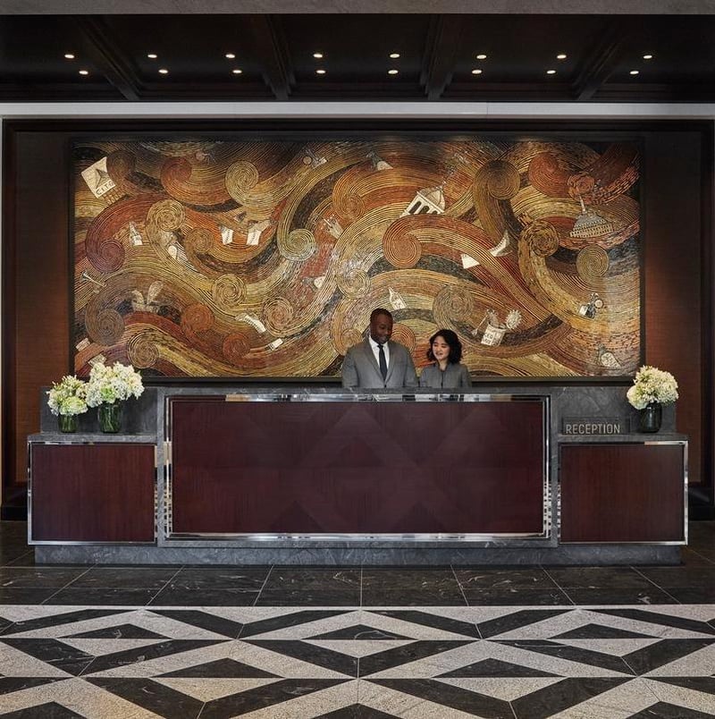 L'ancienne Federal Reserve Bank de 1922 déploie ses sols en terrazzo d'origine et ses plafonds à frises sous une collection de 265 œuvres contemporaines, dont une sculpture monumentale de Lyle London évoquant la pièce Liberty. Les 312 chambres aux salles de bains en marbre italien et miroirs dorés captent la lumière par de vastes baies ouvrant sur Boston. Le brunch dominical de Grana—gaufres aux truffes noires, pancakes aux crevettes—ponctue les escapades sur le Freedom Trail.