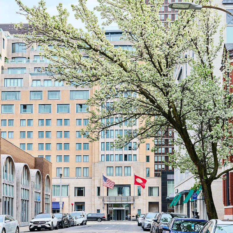 Dans Back Bay, cette tour de calcaire et de brique marie l'héritage asiatique de la marque à l'élégance bostonienne — le hall, conçu selon les principes du feng shui, aligne sa porte d'entrée sur la Charles River. Le spa de 1 500 mètres carrés impressionne par son seuil de pierre verte intense, sa piscine de vitalité et ses hammams. Un passage privé mène au Prudential Center, prolongeant l'expérience vers les boutiques de Newbury Street.