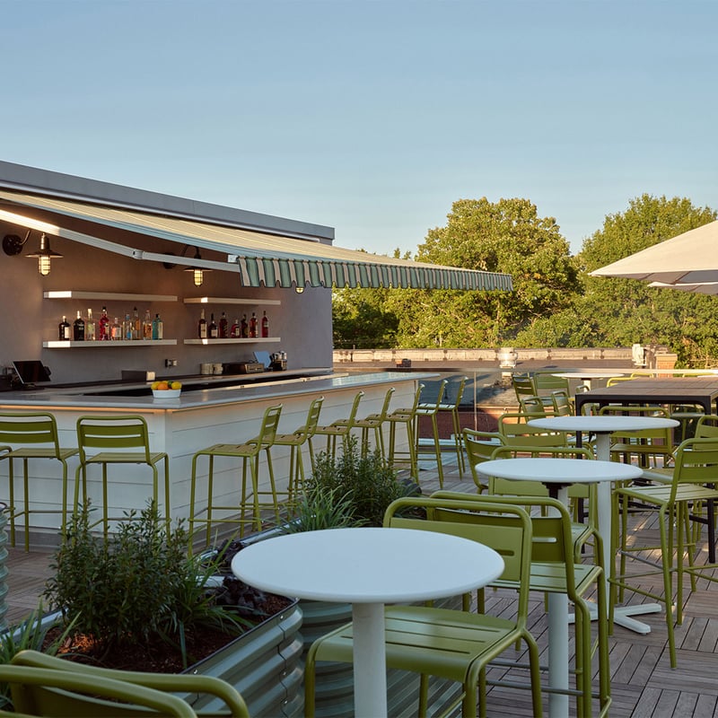 Acier industriel et élégance classique se rencontrent dans les 108 chambres dotées de kitchenettes pour séjours prolongés, tandis que les salles de bains photogéniques surprennent par leur audace visuelle. La Gallery expose des artistes de New Haven, ancrant l'établissement dans la scène créative locale. Au dernier étage, High George offre cocktails et panorama sur l'une des plus anciennes villes américaines. Idéal pour couples esthètes et voyageurs accompagnés de leurs animaux.