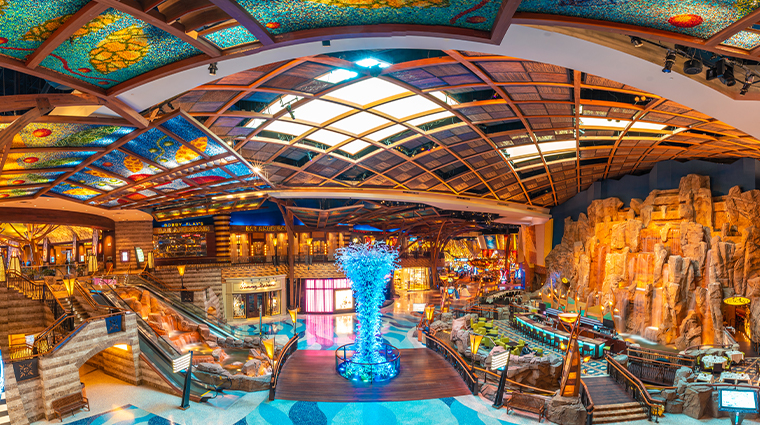 Une immense tapisserie perlée annonce l'esthétique tribale qui imprègne ce complexe surplombant la Thames River et les forêts de Nouvelle-Angleterre. Le Mandara Spa de près de 1 500 mètres carrés offre un refuge loin de l'effervescence du casino, tandis que quarante-deux restaurants et le Vista Lounge—solarium où l'on sirote des cocktails à ciel ouvert—garantissent des soirées variées. Trois salles de concert, dont une arène de dix mille places, attirent les amateurs de spectacles.