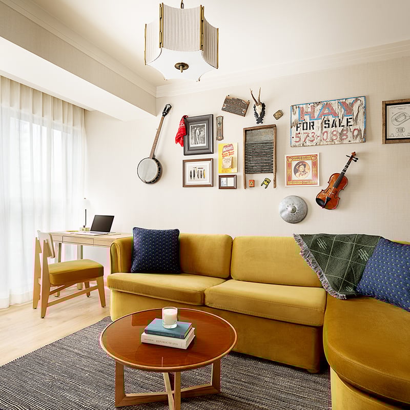 La marque lifestyle de Richard Branson s'ancre aux portes de Music Row dans une tour de brique et de verre au design mi-siècle teinté d'accents industriels. Les 262 chambres accueillant les animaux déploient fenêtres en mezzanine et bois blond chaleureux. L'attrait se démultiplie entre le Pool Club en rooftop avec ses cabanas, le speakeasy The Late Great dissimulé derrière une entrée secrète, et le Funny Library oscillant entre café et espace de coworking.