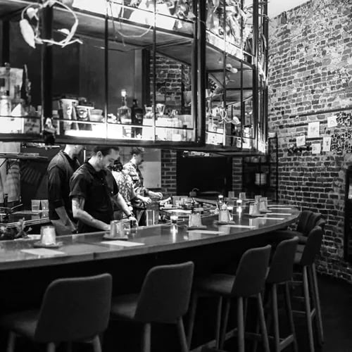 Derrière leur comptoir en U, les chefs Andy Doubrava et Tiffani Ortiz déploient une cuisine étoilée aux accents maximalistes, ancrée dans les saisons du Tennessee. Chaque bouchée révèle leur maîtrise des conserves et du terroir local : aile de poulet désossée nappée de sauce Périgord, cou d'agneau croustillant sur riz Carolina Gold, bouillon aux champignons candy cap. Une expérience théâtrale et savoureuse.