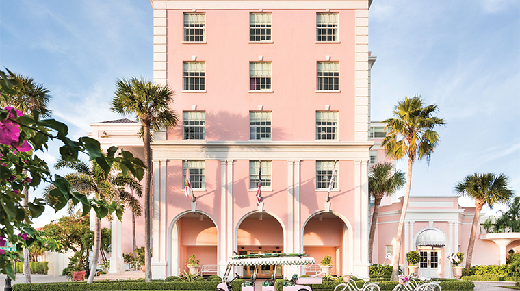 Trois lustres en verre de Murano couleur corail illuminent un hall orné de tapisseries coquillages, donnant le ton théâtral de cet établissement de 79 chambres à quelques pas de Worth Avenue. Le Sunset Pool Deck propose un service cabana et des brumisations Evian toutes les heures; la Suite Présidentielle abrite le plus grand lit de Palm Beach, un Alaskan King de près de trois mètres. La cuisine nikkei se déguste sous les reflets roses du Palm Bar.