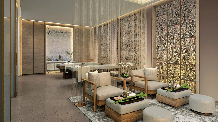 Un escalier monumental taillé dans un unique bloc de marbre mène à ce sanctuaire de 1 000 mètres carrés où onze cabines portent des noms de fleurs floridiennes. La carte Cultural Discovery puise dans les traditions mondiales du bien-être : le rituel Indus Valley associe massage complet et shirodhara, filet d'huile tiède coulant sur le front. Algues et citron vert ancrent les soins dans le terroir côtier.