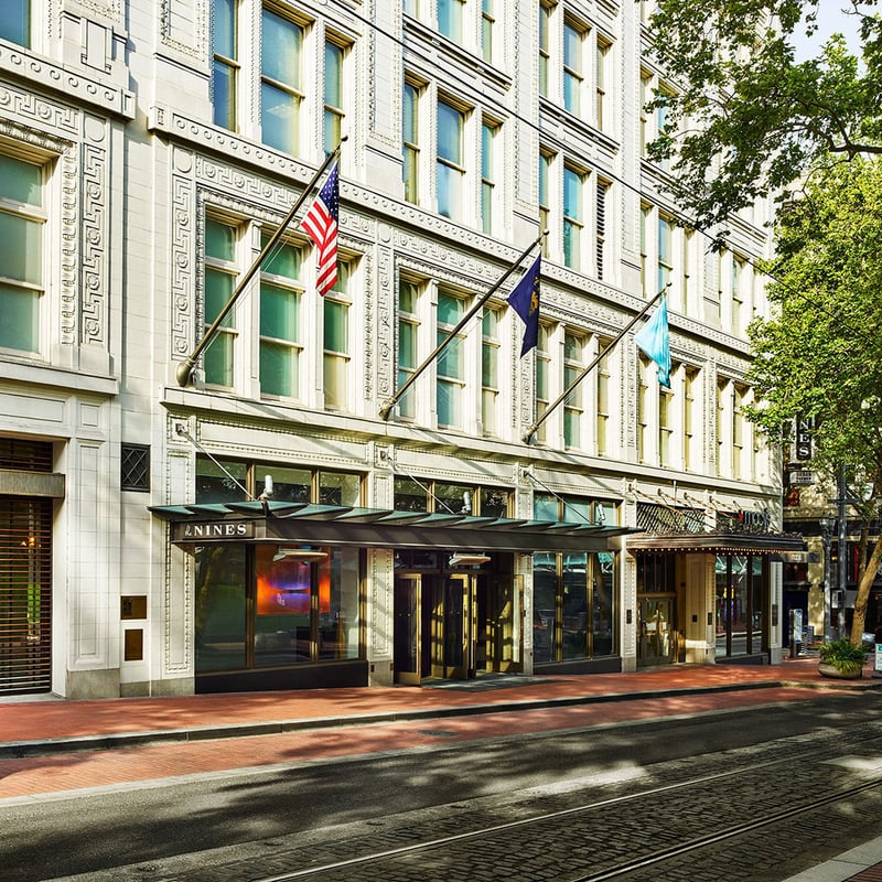 Dans le hall de ce monument Arts and Crafts de 1909, boiseries d'acajou et fresques évoquant Lewis et Clark donnent le ton. Les suites-terrasses disposent de braseros et de vues plongeantes sur la ville. Deux tables cohabitent : le classique Jake's Grill et Fortune, entièrement végétal. À quelques pas du Multnomah Whiskey Library, l'adresse accueille les animaux et séduit les citadins en quête d'histoire vivante.